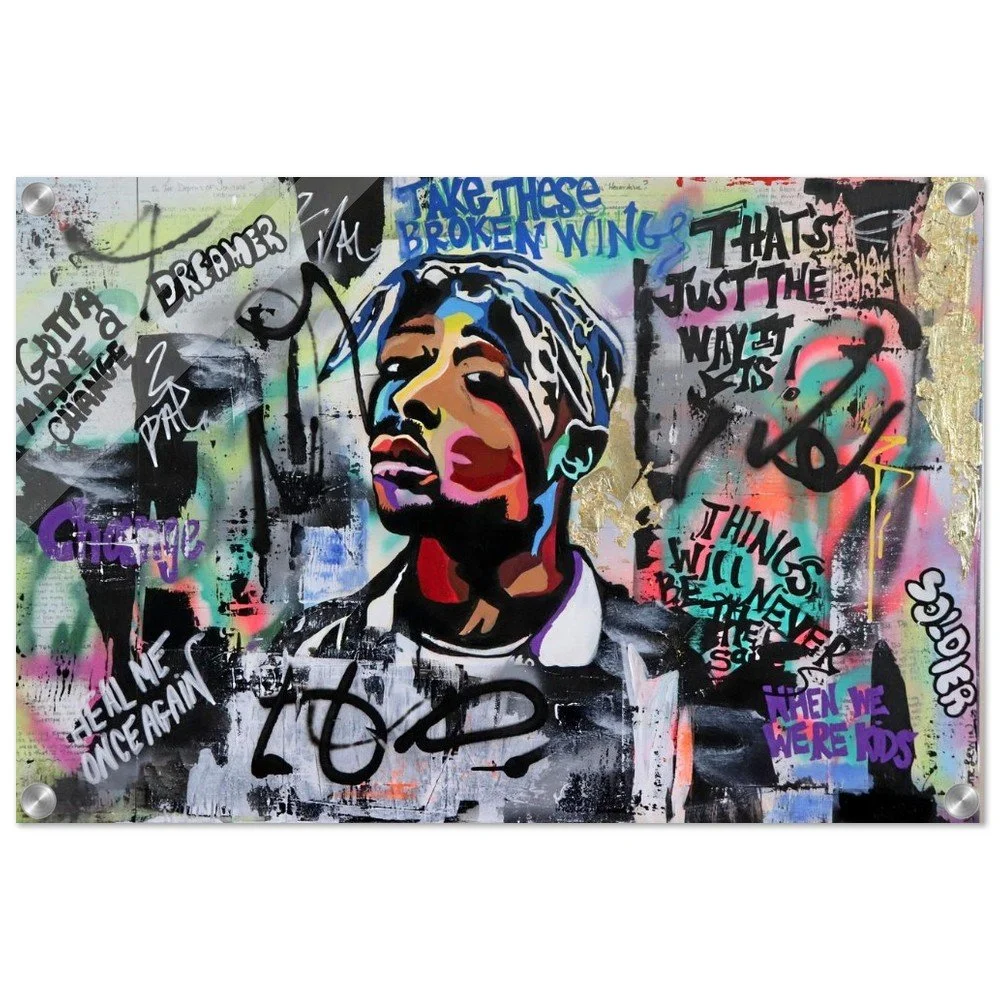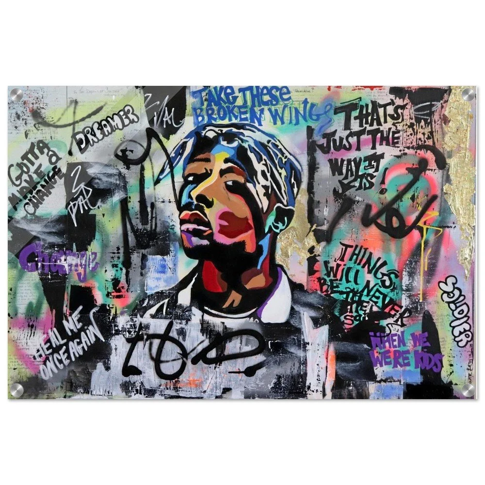 Original Acrylic on Canvas by Stephanie Lewin: This Acrylic Print is a high-definition reproduction of a deeply intentional piece by Stephanie Lewin, founder of Bent, Not Broken. The original work was an acrylic on canvas, painted directly onto the pages of Tupac’s poetry book, "The Rose That Grew from Concrete". It serves as a visual bridge for our community, honoring the transition from breakdowns to breakthroughs and the courage required to bloom in environments that weren't designed for your survival.