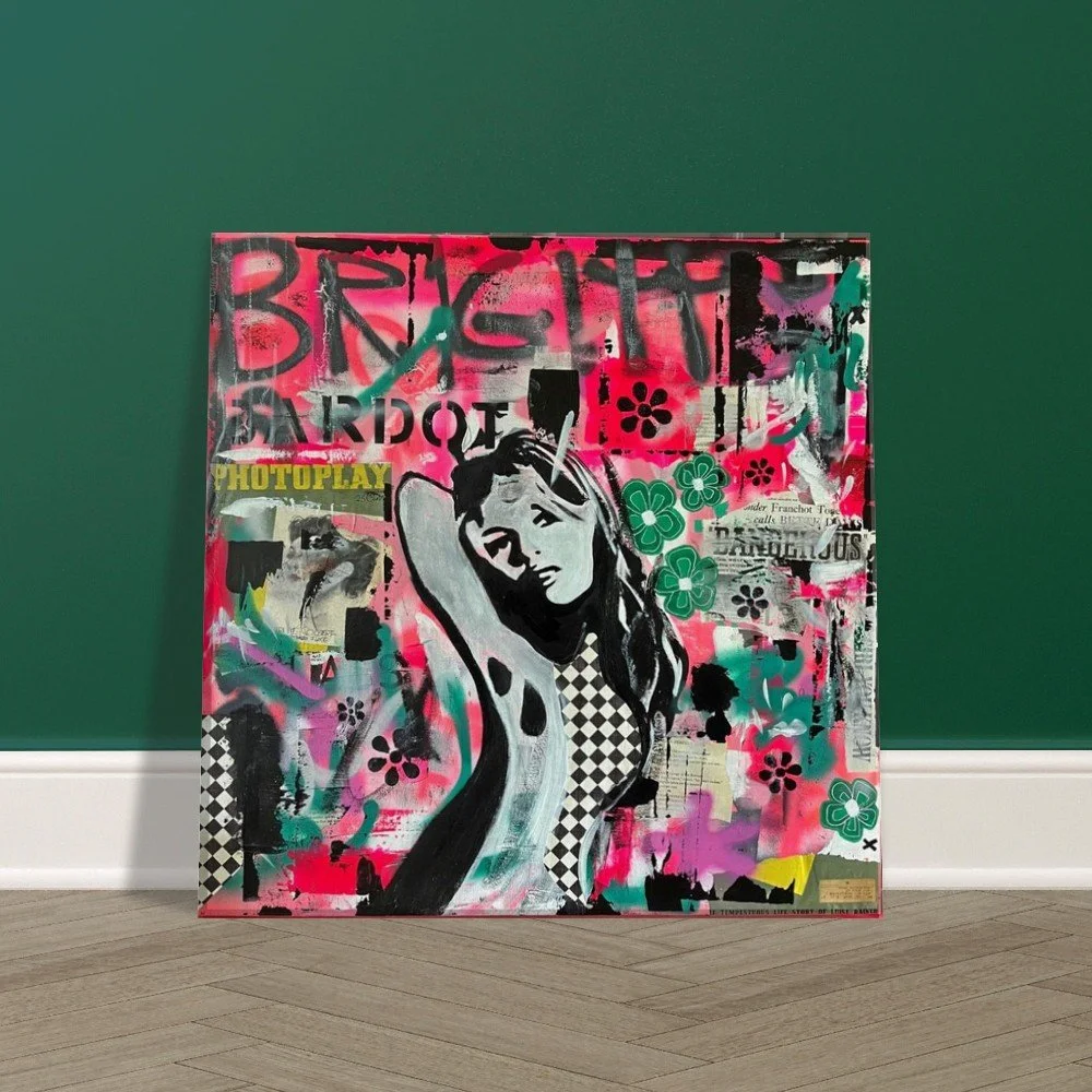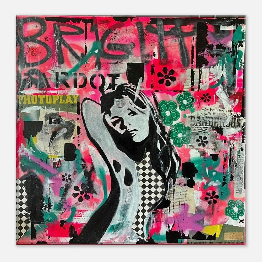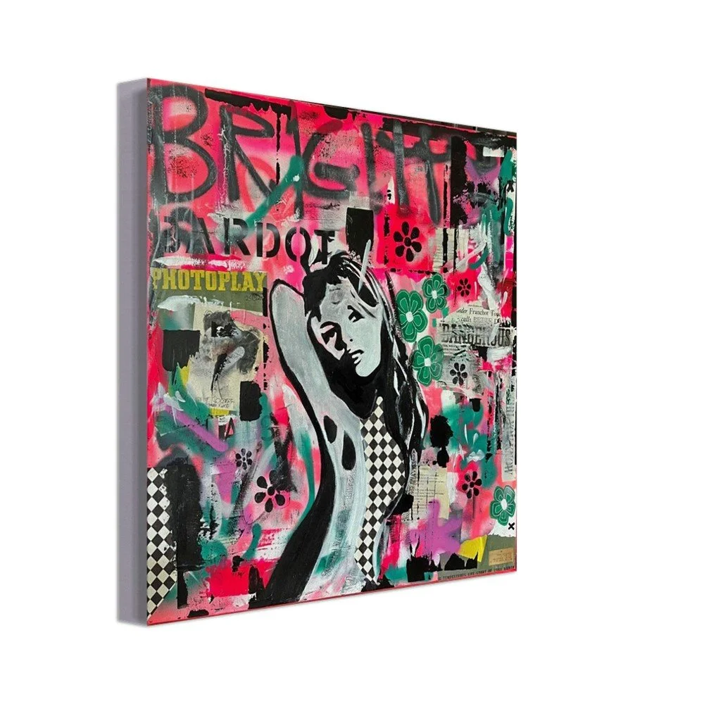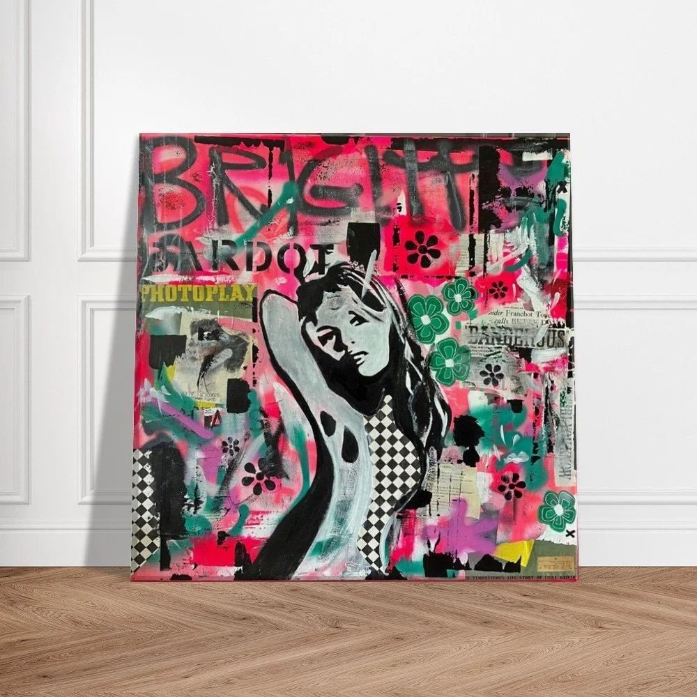 Original Mixed Media by Stephanie Lewin: This Canvas Print is a high-fidelity reproduction of an original mixed-media piece by Stephanie Lewin, the founder of Bent, Not Broken. Stephanie’s choice to paint Brigitte Bardot goes beyond her status as a cinema icon; she serves as a profound symbol for the brand's core message. Bardot’s life reflects the journey from being a "fragmented" idol in the public eye to finding her own Presence and voice. She embodies the truth that even when we are bent by external pressures, our essential self remains unbroken.